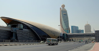 A felszini allomasok igenfuturisztikusan neznek ki, itt ugye keszulni kell a nyari 50 fokra is, akkor pedig nem setalgat csak az utcan az ember. Felmerulhetne a kérdés, hogy minek a metro? Az allomasok ilyen "bura" kinezetuek, zartak, és legkondicionaltak (most igy hogy ezt leirtam elgondolkodtam rajta, hogy hogyan megy ki és be a metro a két szelen? :D) sebaj, legkondicionaltak, az biztos, na es az allomasokrol ilyen bazihosszu mozgojardas folyosok vezetnek mindenhova. Pl a Dubai mall metromegallobol eljutni a plazaba meg mozgojardan is szerintem legalabb 15 perc. De nem voltam olyan metromegalloban, ahol valahova hosszasan ne vezetnenek a folyosok. De voltam, az ovarosban peldaul.